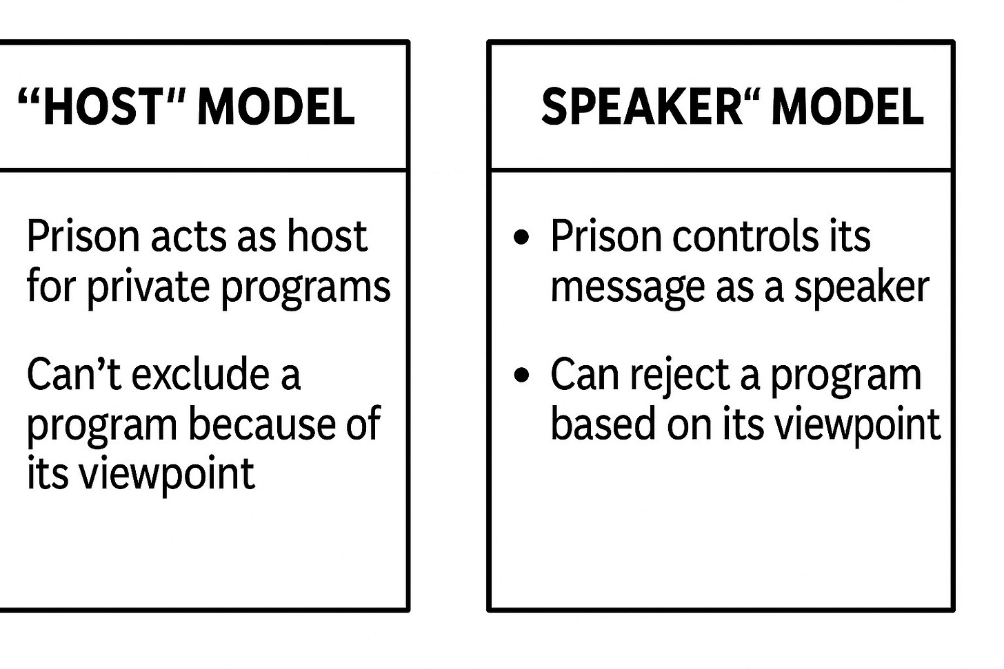 This case is about whether the prison is acting like a host or a speaker. If it’s acting like a host—letting private groups bring in their own programs—then it can’t exclude a program just because it disagrees with the viewpoint. That’s what the majority says happened here: MDOC let outside volunteers teach programs but shut down Quest because of its religious approach, which is viewpoint discrimination.