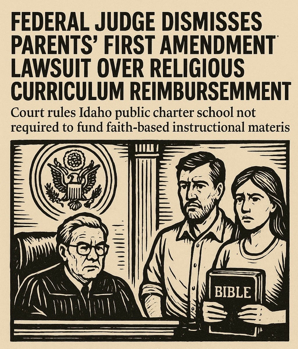 On August 6, 2025, U.S. District Judge B. Lynn Winmill dismissed a lawsuit by Chris and Nicole Trakel against Idaho Superintendent Debbie Critchfield. The Trakels claimed the Idaho Home Learning Academy violated their First Amendment rights by denying reimbursement for religious curriculum materials. The court found jurisdiction was proper but held that public schools are not obligated to provide or fund religious instruction. The decision, citing similar rulings in Idaho and California, emphasized that while parents may provide religious education privately, the Constitution does not require public schools to include it. The dismissal with prejudice ends the case against Critchfield, preventing it from being refiled in federal court.