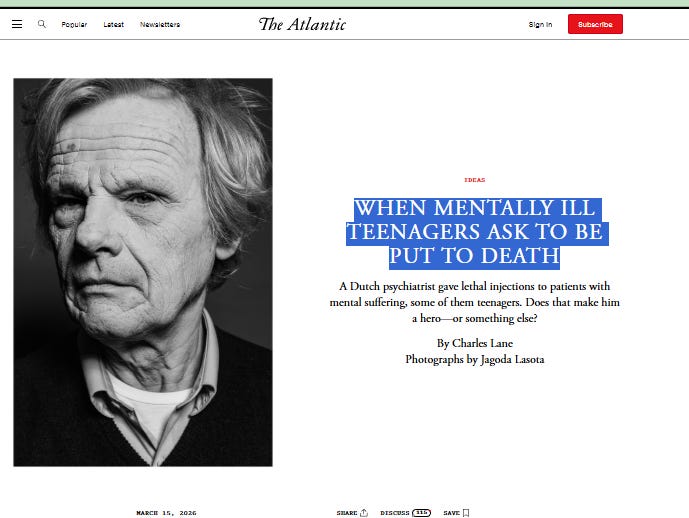 Research shows that euthanasia requests spike after media coverage of high-profile cases, particularly among young women. The system’s own advocates know this. They keep going.