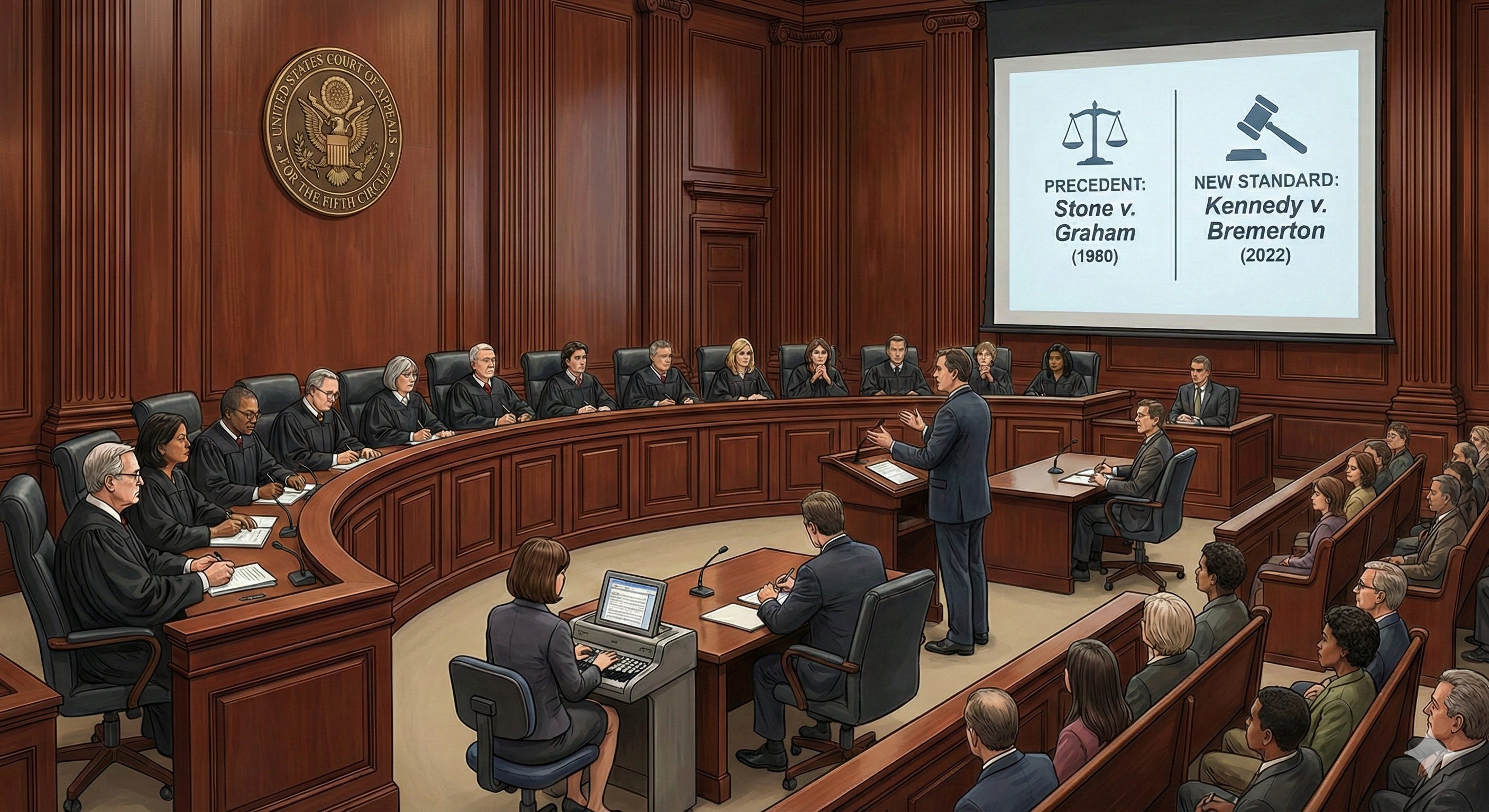 This hearing represents a critical test of the Supreme Court’s 2022 Kennedy v. Bremerton decision. That ruling abandoned the “Lemon test” (which focused on secular purpose) in favor of a “history and tradition” standard. Louisiana and Texas lawmakers passed these laws specifically to test whether this new standard permits religious displays that were previously banned. The 5th Circuit’s decision will determine if Kennedy effectively overruled Stone or if the ban on classroom religious displays remains in force.